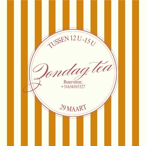 reserveringen kunnen worden t/m 20 februari gedaan, wij zijn open elke laatste zondag van de maand tussen 12 en 15 uur voor een Hightea, u kunt tafel reserveren voor minimaal twee personen, prijzen gelden per persoon