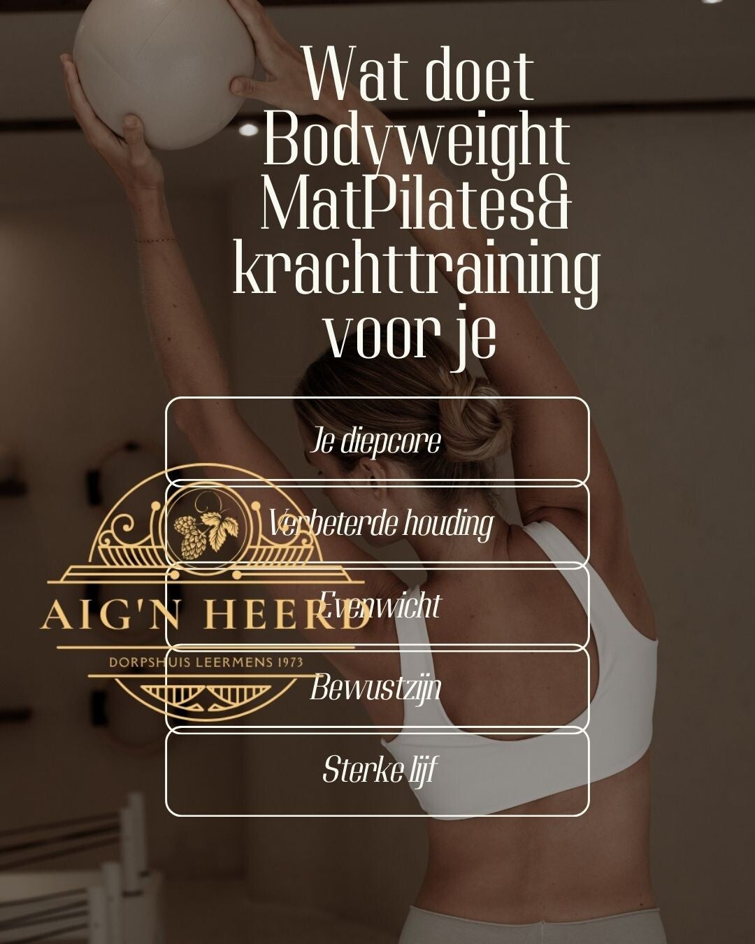 Wij sporten op maandagen, woensdagen en vrijdagen in de ochtend van 10 - 11uur, de combinatie van bodyweight, mat pilates en krachttraining worden gecombineerd voor een sterke lijf.